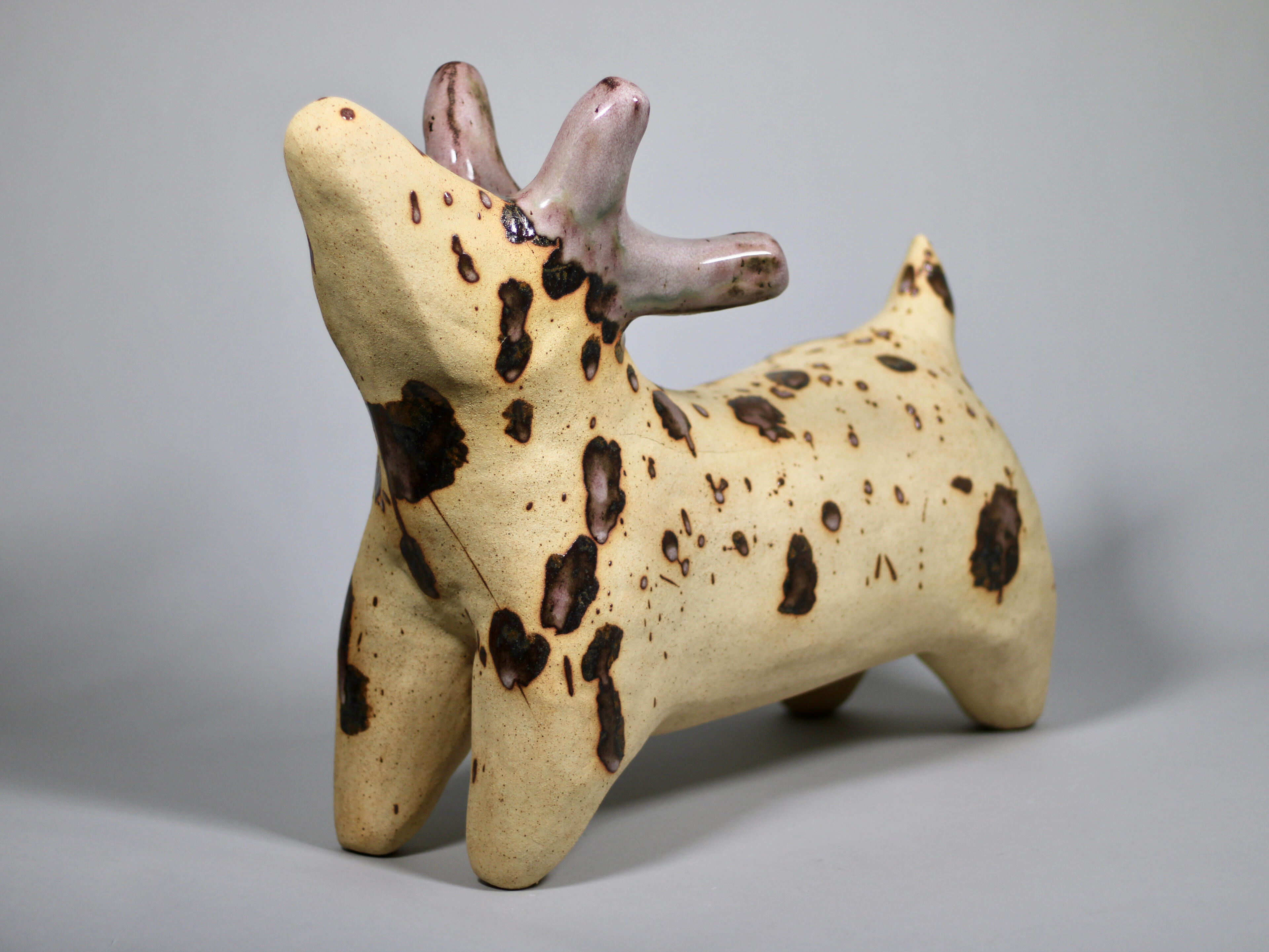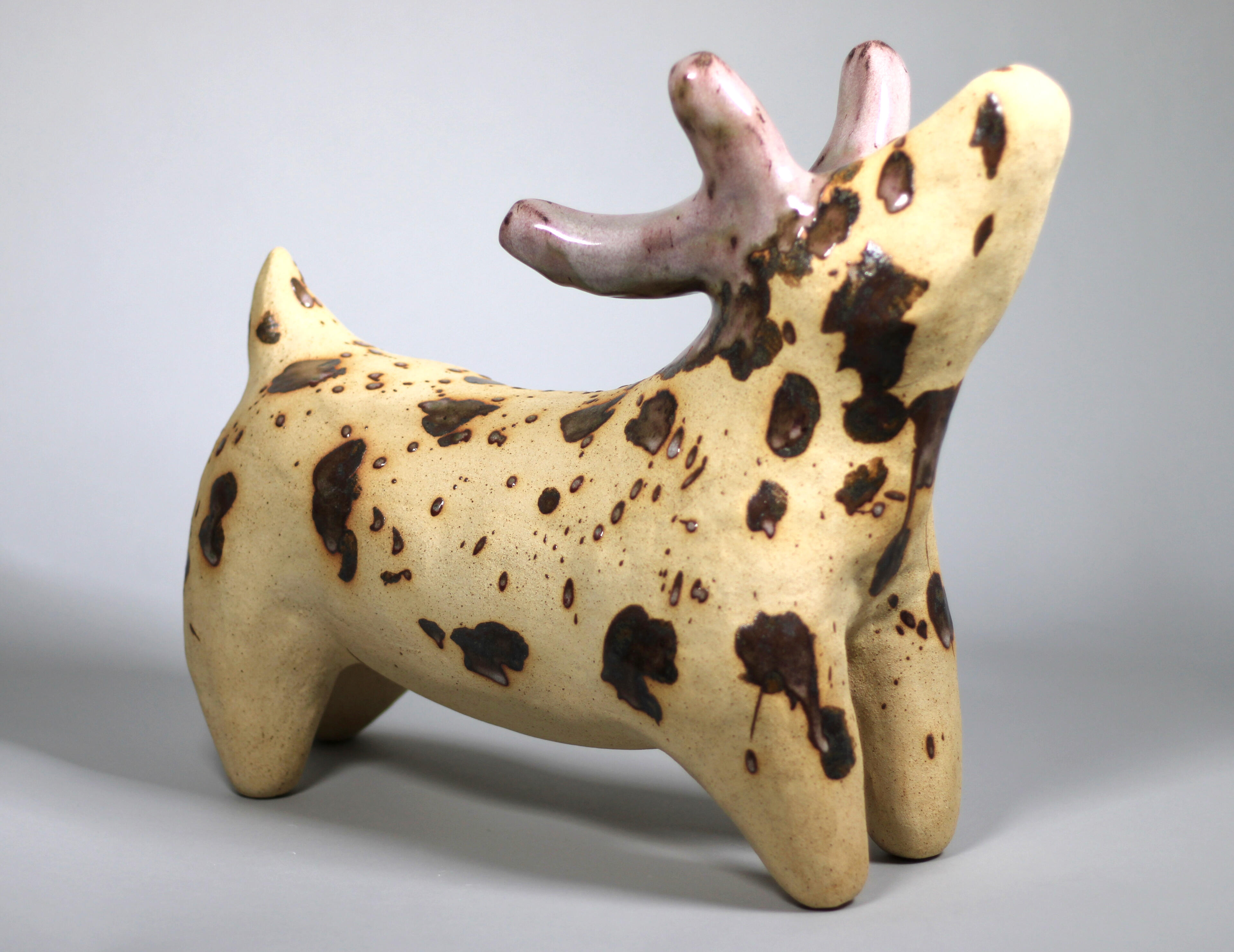 how the Divine creates environments and act as stewards for these environments. By showing my four-legged creatures in different stages, I explore how divinity acts as an inherited title and duty rather than an inherent state of being. The Divine go through a life cycle where they grow into their power and titles before returning to the land and passing their power on. I also look at the corruption of the Divine and the struggle to adapt to the ensuing disruption of communities and life cycles. The Divine are caretakers and creators, when they are corrupted their communities splinter, becoming lost or corrupted as well.This body of work is primarily an introduction to the life cycles of the Divine, and all the inhabitants of this world. The work in “Flora and Fauna” is only the beginning of an ongoing series exploring this world and all of its inhabitants.
