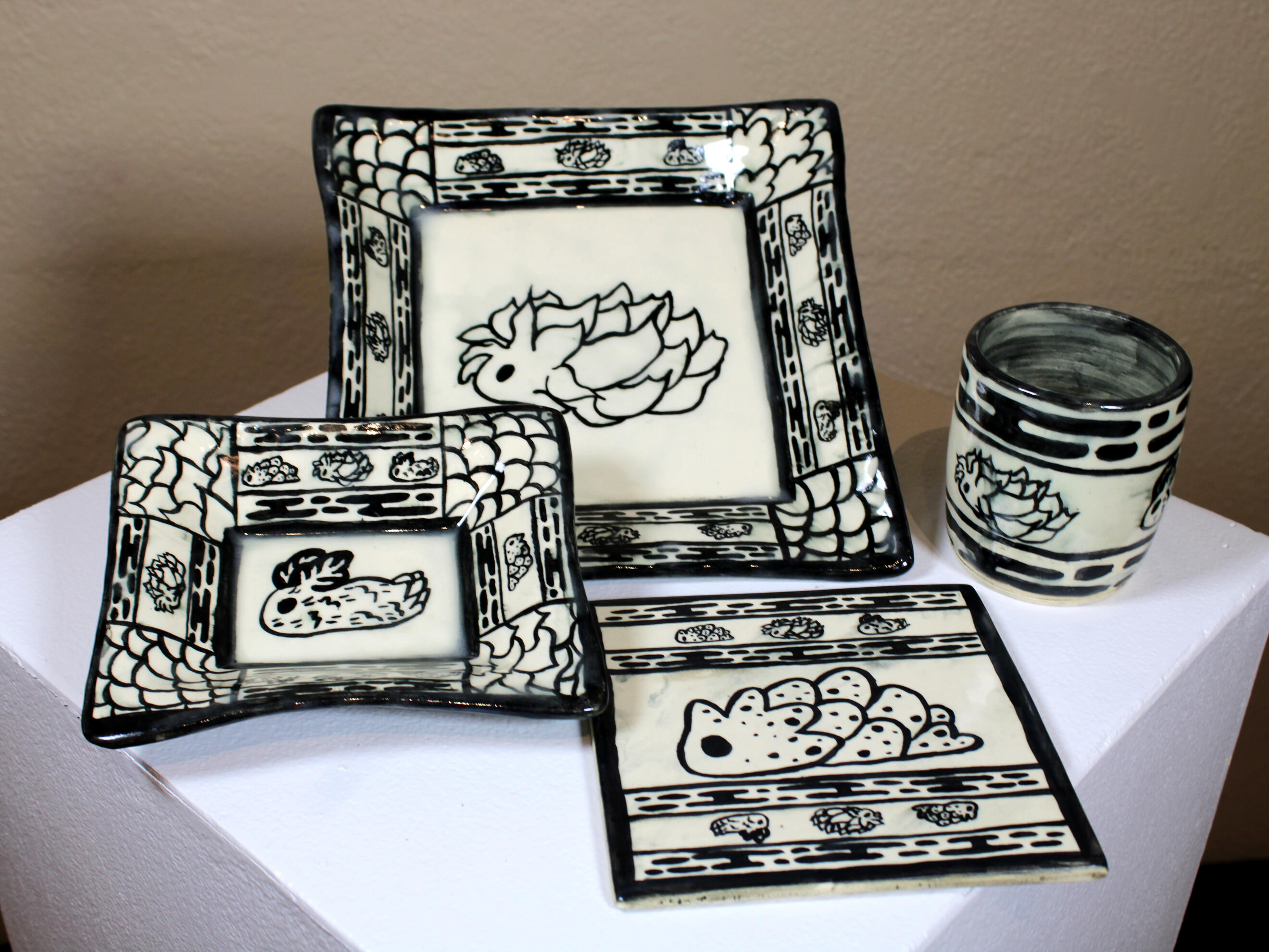 Lucie Jumonville is a Studio Art major pursuing her BFA at North Central College. She is also a College Scholars Honors student and minoring in Classical Studies. Her interest in mythology and storytelling is found throughout her art. She works primarily with clay, but occasionally you can find her creating two-dimensional work. Lucie has work in the permanent collection of Waubonsee Community College and has had her work appear in the 2024 edition of Horizons, the Waubonsee literary magazine.